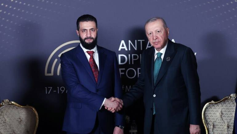الشرع وأردوغان يبحثان تعزيز العلاقات الثنائية على هامش منتدى أنطاليا