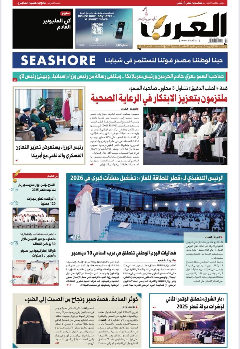 وهذه هي أغلفة الصحف القطرية الصادرة اليوم الأربعاء 3 ديسمبر (كانون الأول) 2025، دون أي إشارة إلى القمة الـ46 لدول الخليج العربية.