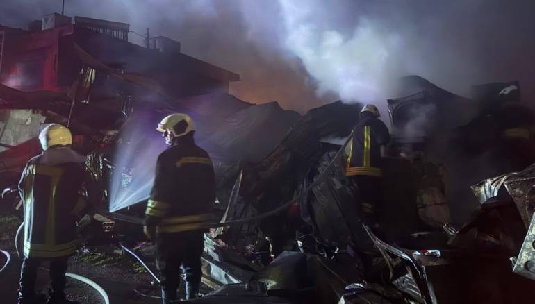 إخماد حريق مستودع في جبلة وإصابة 3 عناصر إطفاء بحالات اختناق