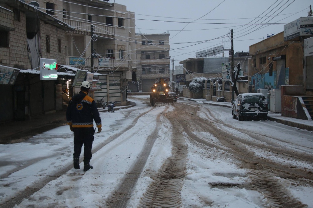 استنفار أكثر من 100 فريق دفاع مدني لمواجهة العاصفة الثلجية في سوريا