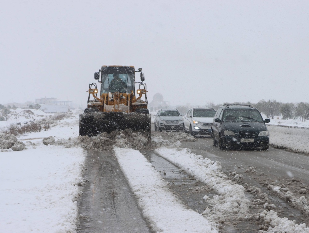 فرق الدفاع المدني تواصل فتح الطرق المغلقة جراء الثلوج والأمطار في عدة محافظات